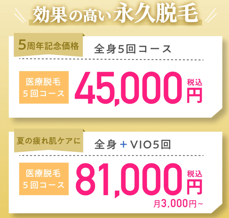 熱破壊式の脱毛機で全身脱毛が受けられるプランで、都度払いが可能なクリニックを紹介します。