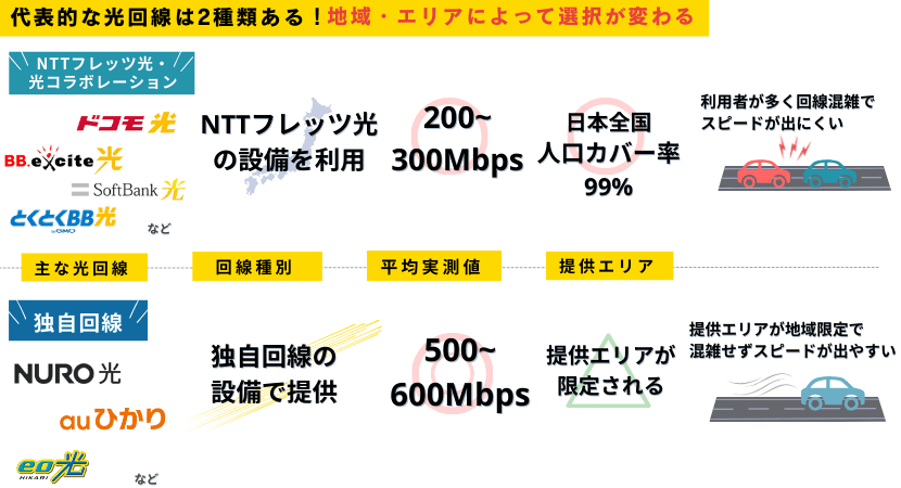 光回線は大きく分けて、「NTT回線」と「独自回線」の2種類があります。