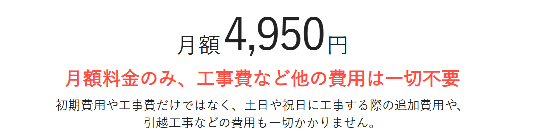 | 月額料金(戸建て) | ~12ヶ月目:4,697円 13ヶ月目~:4,950円 | 4,796円 |
