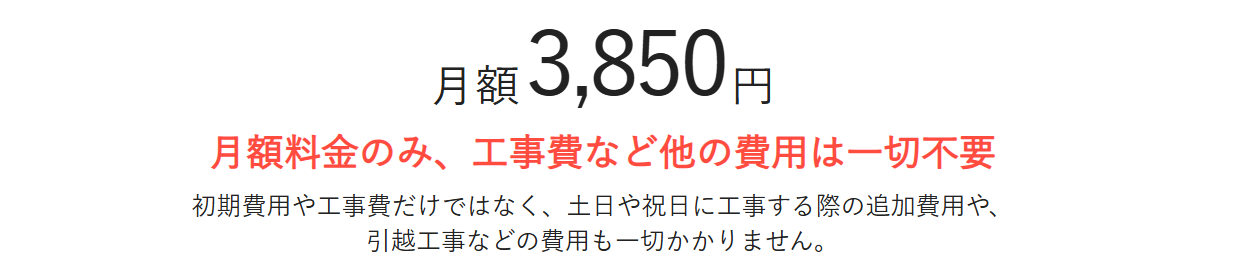 また、工事費用も完全無料のため残債なども請求されず、いつ解約をしても解約に伴う請求は発生しないのが特徴です。