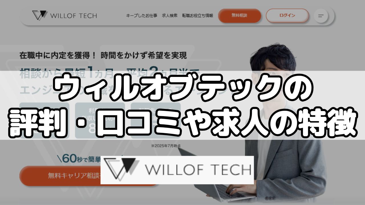 この記事では、担当エージェントの転職サポートが口コミでも評判が良く、年収・スキルもアップ可能な求人を含む豊富な非公開求人がおすすめの転職エージェント・ウィルオブテックについて、利用メリットやおすすめ理由、利用者の評判・口コミなど2025年最新情報で解説。また登録前に知っておきたい注意点やデメリット、サービスの流れを紹介します。