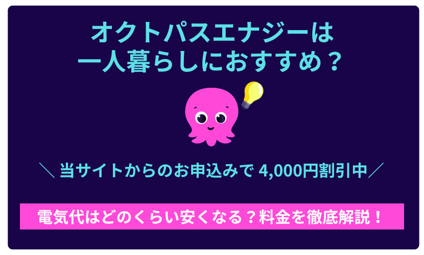 結論からいうと、一人暮らしにおすすめの電力会社は「オクトパスエナジー」です。