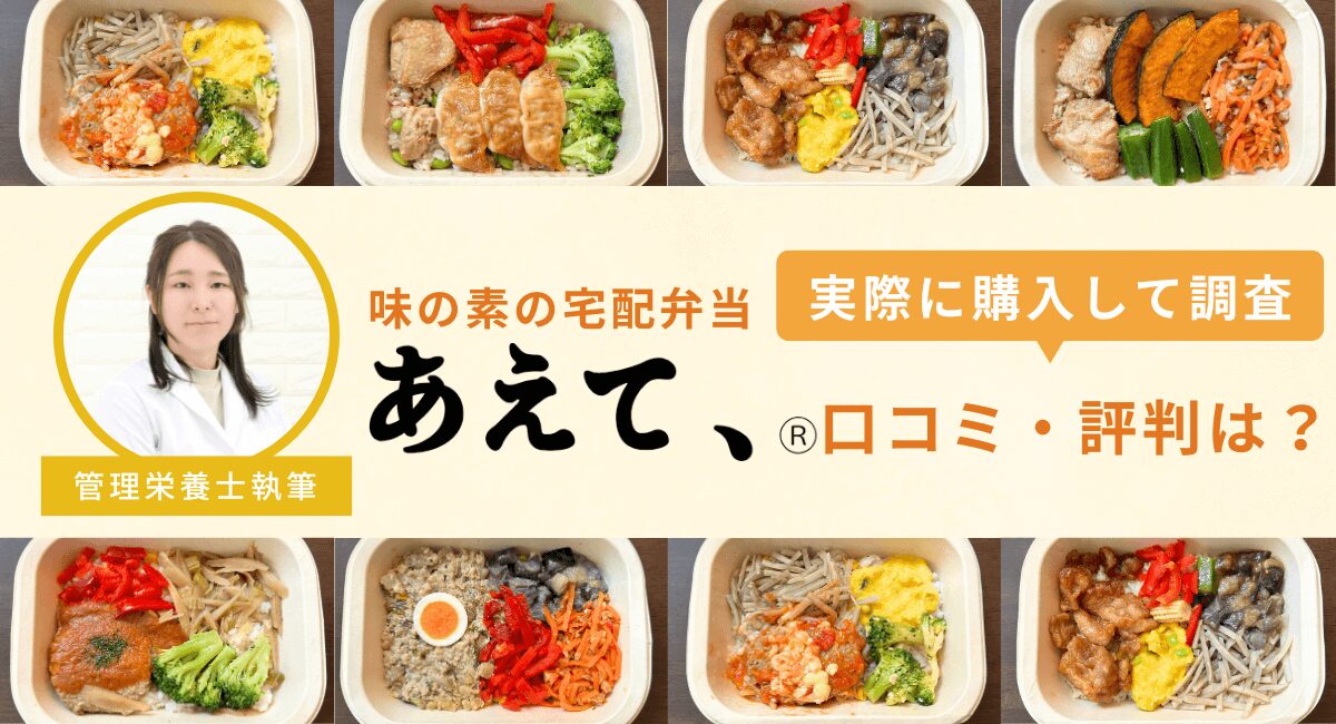 「あえて、®」は、食品メーカー味の素株式会社が販売している宅配式の冷凍弁当サービスです。まぜご飯とメインの料理が1つになっている商品で、1日の1/3の野菜と食物繊維(※)が含まれています。評判が良い「あえて、®」ですが、「味は本当においしいのか」「料金は安いのか」と実際に使った方の口コミが気になる方も多いはずです。そこで当編集部では、「あえて、®」の冷凍弁当を実際に注文して実食レビューしました!また、口コミも踏まえて「あえて、®」をがおすすめできる人も解説します。実際の商品毎の栄養成分値は、原材料等の要因により前後致しますので、各商品ページにてご確認ください野菜:厚⽣労働省推進・健康⽇本21の野菜摂取⽬標量(1⽇350g)に基づく食物繊維:栄養素等表⽰基準値(18歳以上、基準熱量2,200kcal)に基づく実際に「あえて、®」を契約して正直に味をレビューした内容を1分の動画にまとめました。申し込みを検討中の方は、ぜひ参考にしてください!PR:味の素株式会社記事内の金額はすべて税込表記です。本記事は掲載時点の情報であり、最新のものとは異なる場合がありますので予めご了承ください「あえて、®」の基本情報「あえて、®」は食品メーカーの味の素社が販売している宅配式の冷凍弁当サービス。大麦入りのまぜご飯とメイン料理がセットになっている商品です。まずは、「あえて、®」の基本情報を解説します。味の素社が販売している宅配式の冷凍弁当サービス出典:味の素公式サイト(https://www.ajinomoto.co.jp/)「あえて、®」は50年以上冷凍食品の研究を続ける味の素株式会社が開発した冷凍弁当です。宅配式の便利なサービスで、ご自宅に直接冷凍弁当が届きます。「あえて、®」の基本情報は以下のとおりです。 料金/プラン 基本情報 セット数 6食:5,766円12食:10,236円20食:14,900円(税込) 1食の料金 6食:961円12食:853円20食:745円(税込) 1食の料金(お試しセット) - 送料 990円(税込)(※1)定期初回お届け限定送料無料(※2) クーポン/割引 - 1:沖縄・北海道・一部離島地域は初回2,500円(税込)2:味の素社当社。負担6食セット、一部キャンペーンは対象外。沖縄・北海道・一部離島地域を除く 都度/定期 定期(スキップ・休止可) 配達周期 1週間/2週間/3週間/4週間 日時指定/置き配 日時指定:可置き配:不可 配送地域 全国(一部地域除く) 保存方法 冷凍(電子レンジ解凍) メニュー選択 可 主食(ご飯)の有無 あり まぜご飯と主菜、副菜がセットになっている「あえて、®」の冷凍弁当。どんぶりのようにまとめて食べられるところがポイントです。50種類以上のメニューから好きなものをチョイスでき、配送頻度も1~4週間から選べます。6・12・20食セットがあり、家庭に合ったメニュー・量を選択できるでしょう。「あえて、®」のこだわりポイント出典:あえて、®公式サイト(https://aete.ajinomoto.co.jp/)「あえて、®」のこだわりポイントは以下の4つです。味の素社の宅配冷凍弁当「あえて、®」のこだわり からだにいいもの、おいしく、ちゃんと 豊富な素材を使用したまぜご飯が最後の一口まで優しくあなたを満たす 栄養バランスの整った一膳がからだを満たす 手"間"抜きで大切な時間を増やす「あえて、®」では長年の研究で築いたおいしさ設計技術®を活用しています。香りや味、食感などが合わさって感じる「おいしさ」を、エキスパートによる評価と先端科学技術を組み合わせて再現。人間の複雑な感覚を分析した独自の技術を活かして、おいしさにこだわっている点が魅力です。また、さまざまな食材と大麦を使ったまぜご飯が入っています。見た目も華やかで、おかずだけでは足りない栄養素や食物繊維を摂取できるところがポイントです。出典:あえて、®キャンペーン公式サイト(https://aete.ajinomoto.co.jp/pages/lp_ad)「あえて、®」では3つの栄養素の基準があり、食物繊維7g、食塩2.3g、野菜120gをベースに冷凍弁当が開発されています。1日の1/3の野菜(※1)と食物繊維(※2)が含まれているため、手軽に野菜を摂りたい人におすすめ。食塩も1日の1/3(※2)に抑えられているため、食事に気を遣いたい人も安心できます。実際の商品毎の栄養成分値は、原材料等の要因により前後致しますので、各商品ページにてご確認ください1:厚⽣労働省推進・健康⽇本21の野菜摂取⽬標量(1⽇350g)に基づく2:栄養素等表⽰基準値(18歳以上、基準熱量2,200kcal)に基づくさらに、「あえて、®」では手抜きではなく手”間”抜きを提供。時短したい人が多い食事の準備〜片付けの時間を削減して、ヘルシーな料理で大切な人との時間を増やすサポートをしてくれます。「あえて、®」は定期初回お届け限定で送料無料!味の素社の宅配冷凍弁当「あえて、®」では定期初回お届け限定で送料が無料(※)!通常990円(税込)かかる送料を大幅にカットできます。お得な価格で味の素社こだわりの冷凍弁当を楽しめるところがうれしいポイント。定期購入の縛りはないため、手軽に「あえて、®」を利用したい方にもぴったりです!口コミや評判が気になって