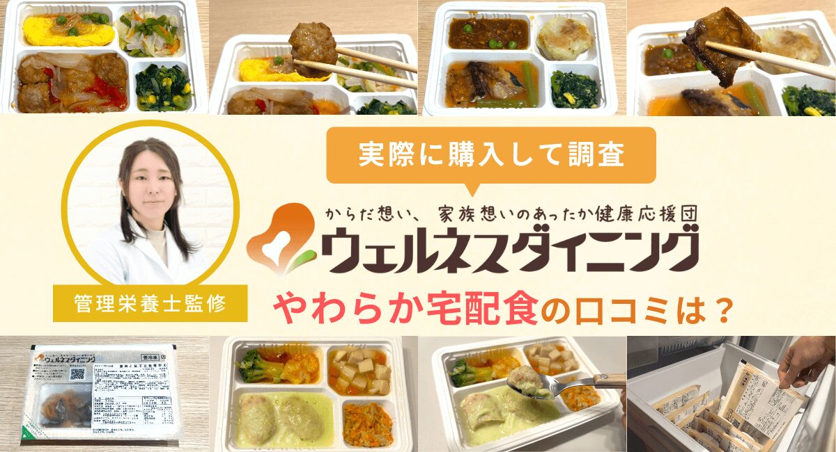 ウェルネスダイニングのやわらか宅配食(旧:やわらかダイニング)は、噛む力が弱い方向けの宅配弁当。3段階のやわらかさから選べるうえに、管理栄養士への栄養相談が可能です。やわらか宅配食を検討しているものの、「本当に美味しい?」「ちゃんとやわらかいの?」と利用者の口コミ・評判が気になっている人も多いでしょう。そこで、当編集部では、ウェルネスダイニングのやわらか宅配食の冷凍弁当7食を実食!リアルな感想を本音でレビューします。また、利用者の口コミや評判を集めて、味や料金などのリアルな声を紹介!調査した結果わかった、ウェルネスダイニングのやわらか宅配食がおすすめな人・おすすめできない人の特徴は以下のとおりです。メリット・デメリットや料金プランについても解説するので、ウェルネスダイニングのやわらか宅配食が気になっている方はぜひ参考にしてください! 記事内の金額はすべて税込表記です。 本記事は掲載時点の情報であり、最新のものとは異なる場合がありますので予めご了承くださいやわらか宅配食(旧:やわらかダイニング)の基本情報ウェルネスダイニングのやわらか宅配食(旧:やわらかダイニング)は、噛む力が弱いご高齢者向けの宅配弁当サービスです。まずは、基本情報を紹介します。ウェルネスダイニング株式会社が運営する宅食サービスウェルネスダイニングのやわらか宅配食(旧:やわらかダイニング)は「ウェルネスダイニング株式会社」が提供する冷凍弁当の宅配サービスです。管理栄養士監修のもと、やわらかくて美味しい冷凍弁当を提供しています。 料金/プラン 基本情報 セット数 7食プラン:5,508円14食プラン:10,584円21食プラン:15,444円(※ほどよくやわらか宅配食コースの料金) 1食の料金 735円~(ほどよくやわらか宅配食コース21食) 1食の料金(お試しセット) - 送料 都度:880円定期:無料※7食は440円 クーポン/割引 - 都度/定期 都度/定期(スキップ・休止可能) 配達周期 毎週/2週に1回/3週に1回/月に1回 日時指定/置き配 日時指定:可置き配:不可 配送地域 全国(一部地域除く) 保存方法 冷凍(電子レンジ解凍) メニュー選択 不可(おまかせ) 主食(ご飯)の有無 なし ウェルネスダイニングのやわらか宅配食の宅配弁当は、やわらかい食事のメニュー数が多いのが特徴です。どのコースも30種類以上のメニューがあるので、最低でも1か月は毎日違う食事を楽しめます。送料は全国一律880円(定期の場合は無料)で、住む場所によって負担が大きくなることはありません。地方に住むご高齢の両親や親戚の方へ送る際も、送料を気にせず注文できます。噛む力のレベルに合わせて選べる3段階のやわらかさ出典:ウェルネスダイニングのやわらか宅配食公式サイトウェルネスダイニングのやわらか宅配食(旧:やわらかダイニング)では、噛む力に合わせて3段階のやわらかさからコースを選べます。それぞれのコースの特徴は以下のとおりです。 特徴 塩分 ほどよくやわらかめ宅配食 ひと口サイズのものが食べやすい方向け 2.5g以下 かなりやわらか宅配食 とろみがついているものが食べやすい方向け 2.2g以下 ムースやわらか宅配食 舌でつぶせるやわらかさが食べやすい方向け 2.4g以下 本来の形を残しつつやわらかく調理した『ほどよくやわらかめ宅配食』、お箸で簡単にほぐれて歯茎でつぶせるやわらかさの『かなりやわらか宅配食』、舌でつぶせるムース状の食事『ムースやわらか宅配食』があります。どのコースも1食あたりの塩分量が2.2g以下で控えめに調整されているのもポイントです。血圧が気になる方、腎臓に負担をかけたくない方は、ウェルネスダイニングのやわらか宅配食を日々の食事に取り入れることで、塩分摂取量をコントロールできます。ウェルネスダイニングのやわらか宅配食は初回購入が送料無料!冷凍弁当の料金だけで、やわらかい食事を楽しめます。気になっている方は初回の特典を活用してお得にお試ししてみてください! 初回は送料無料! ウェルネスダイニングのやわらか宅配食をお得に利用する やわらか宅配食の良い口コミ・評判を徹底調査ウェルネスダイニングのやわらか宅配食(旧:やわらかダイニング)について、「実際の評判はどうなの?」「まずいという噂は本当?」と気になる方も多いでしょう。そこで当編集部は、口コミ・評判を徹底調査して、噂の真偽を検証しました。まずは、ウェルネスダイニングのやわらか宅配食の良い口コミを紹介します。「味がおいしい」と家族から好評だった 口コミ 出典:X(旧Twitter) やわらかダイニング・かなりやわらか食「ハンバーグトマトソース」を食べました。 両親にも食べてもらいましたが、かなり好評。僕が食べても良い感じです。ハンバーグが普通の美味しいやつでした。 メニュー ・ハンバーグトマトソース ・スイートポテト ・ジンジャーオムレツ ・ほうれん草のソテー ウェルネスダイニングのやわらか宅配食が「美味しかった」との口コミがありました。ご高齢者向けの食事は味が薄くなりがちですが、