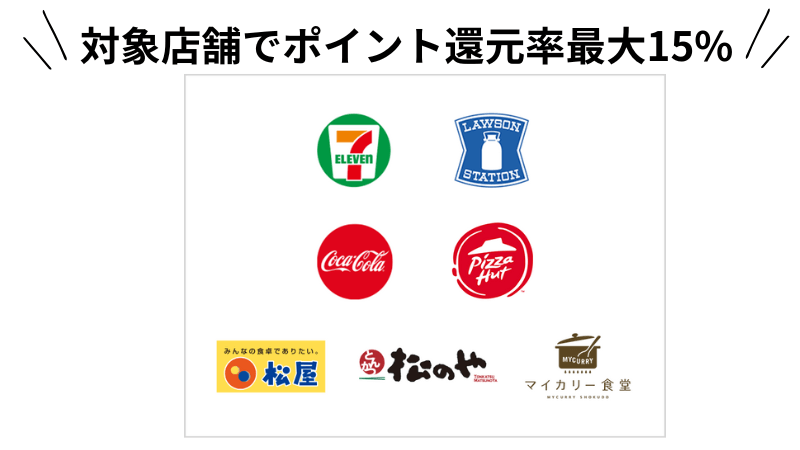 | ポイント還元率 UPサービス | コンビニ、ファストフード、ファミレス、カフェなど |