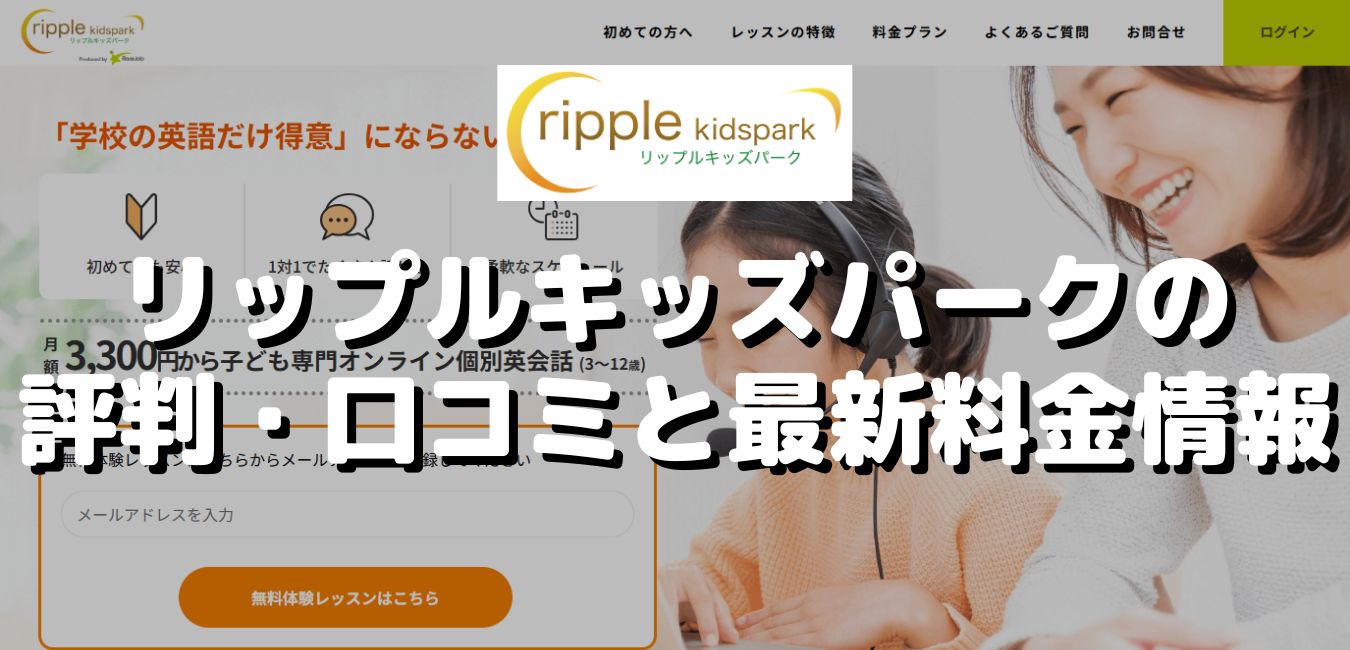 この記事では、3歳の子供でも楽しく英語を学べる先生とのマンツーマンレッスンがおすすめと口コミで評判のオンライン英会話・リップルキッズパークについて、おすすめ理由や利用メリット、2026年最新の料金プラン情報を徹底解説。また評判・口コミからわかった、受講前に知っておきたいリップルキッズパークのデメリットや注意点も紹介します。