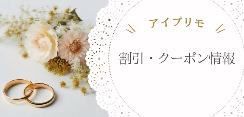 結婚式場などで、アイプリモの割引カード付き紹介パンフレットが配布されていることがあります。